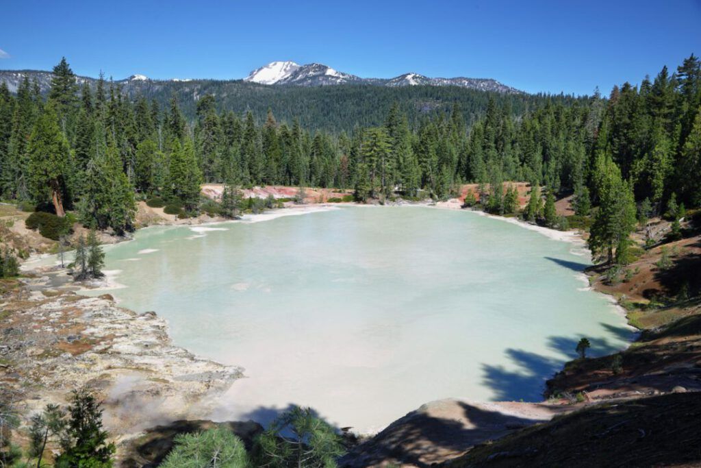 - Bumpass Hell Trail (ongeveer 5,6 km): Deze gematigde wandeling leidt naar het hydrothermale gebied van Bumpass Hell. Het biedt daardoor de kans om de geothermische wonderen van het park van dichtbij te zien.